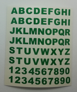 52 Klebebuchstaben und 20 Zahlen "Standard" (Bogen), grün ab 8 mm